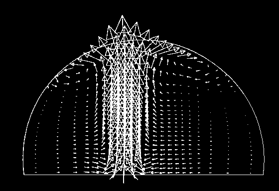 Figure 2. Velocity field in a cylindrical section through the fire.