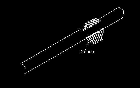 Missile Model with Canards. In the simulation the tail fins were ignored.