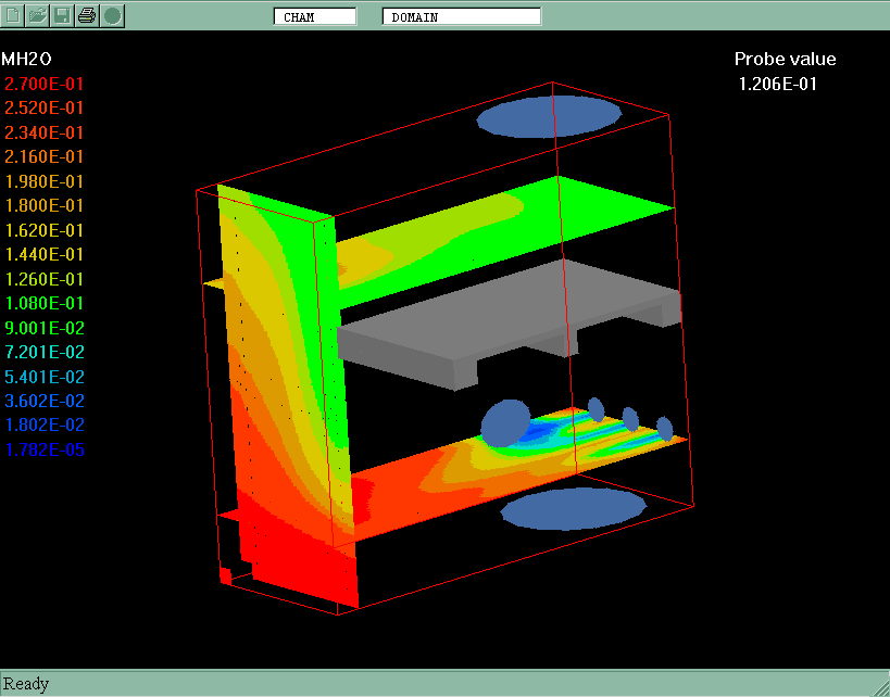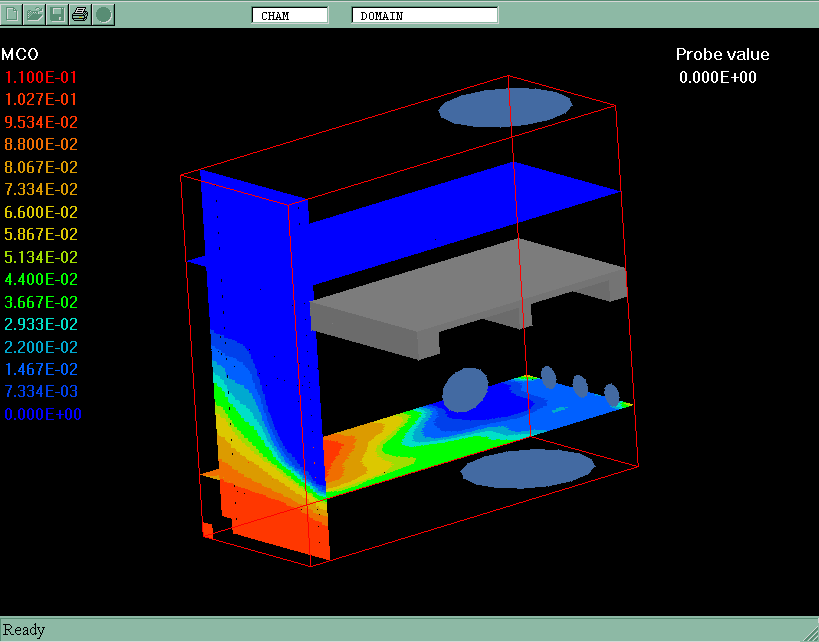 All model settings have been made in VR-Editor of PHOENICS 3.3.1. PLANT menu has been used to introduce the combustion model features.