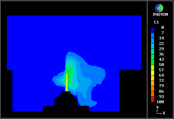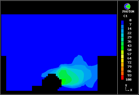 NOTES: - Rebreathing of expired gases with accumulation of CO2 has been suggested as one possible explanation of the association of SIDS and prone sleeping. - PHOENICS is used to simulate the distribution and dynamics of expired air in the vicinity of an infant in a cot in different sleeping positions. - The preliminary results shown here suggest that prone sleeping gives a strong accumulation of expired air in front of the infant's face, with risk of rebreathing.