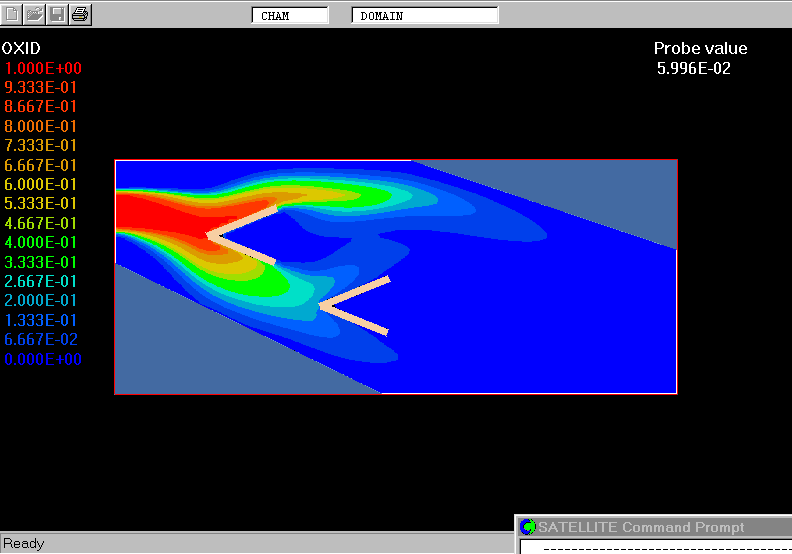 The case is aimed to demonstrate the 'cut-off' technique of PARSOL method to represent the inclined walls of combustor and flameholders on Cartesian grid.