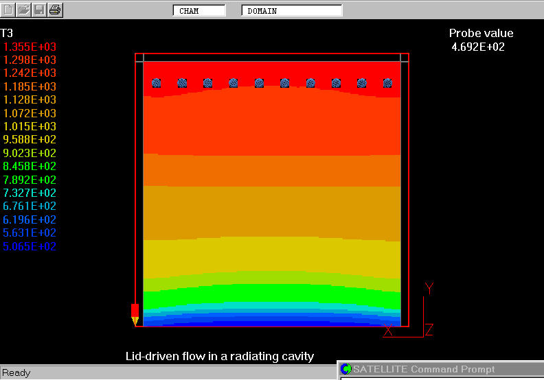 The IMMERSOL model is used to simulate the distribution of T3 and TEM1 within the space filled with transparent air. From the temperature fields the radiant heat fluxes, QRX and QRY, W/m^2, are calculated and used as the heat sources in iterative manner.