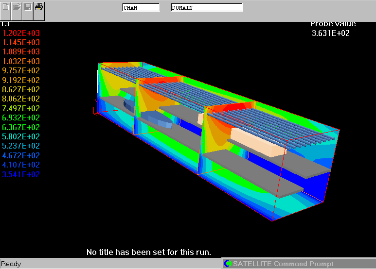 The plots show the distribution of temperature and directional radiant heat flux within the oven, heater elements and loads.
