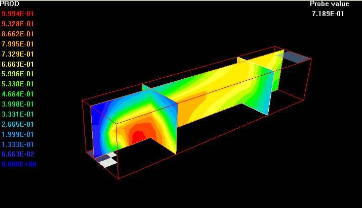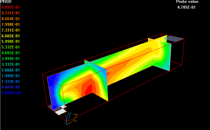 The case presents the implementation in PHOENICS of P-1 radiation model. It is the simplest case of the more general P-N model based on the first order spherical harmonic expansion of the radiation intensity. The model is capable of taking into account the effect of anisotropic scattering in absorbing, emmiting and scattering media.