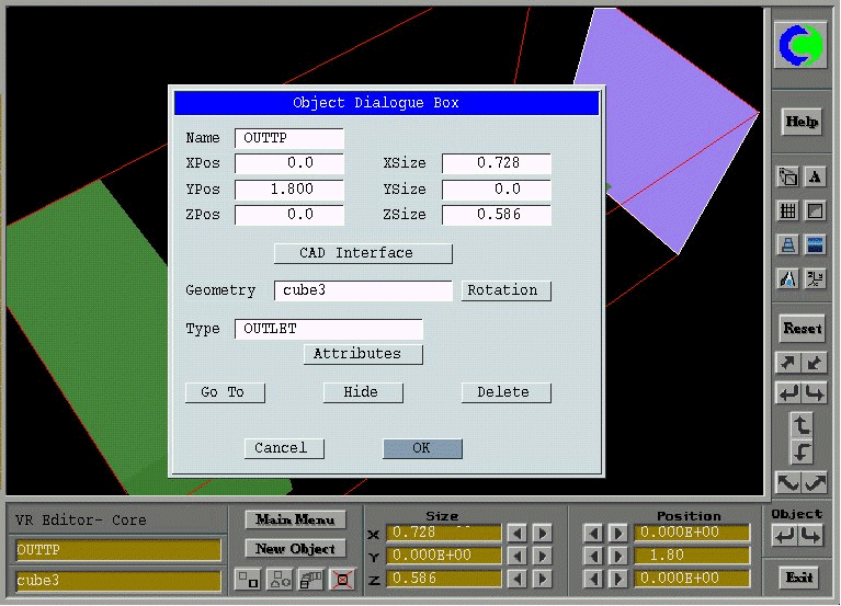 In the example presented here, however, the geometrical data were entered directly, by the use of VR's own "object-introducing" facilities, ie without making use of CAD files. and the solid-stress capabilities were not activated.