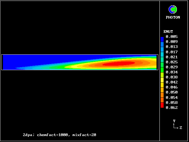 Some line-printer output from the PHOENICS library case W975 now follows; this concerns flow between a hot surface at rest and an upper cold moving surface. This is a Couette-flow idealization of an unstable atmosphere.