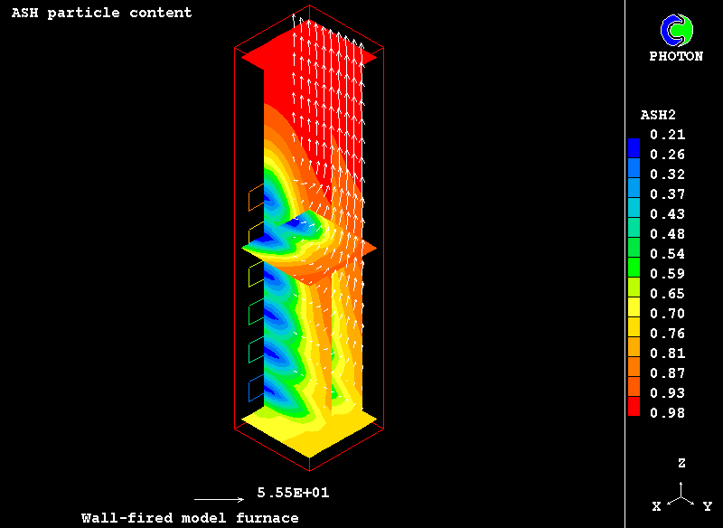 The model is applied to the pulverized coal combustion in a wall-fired model furnace.