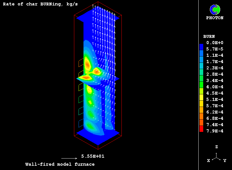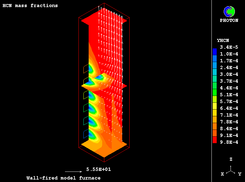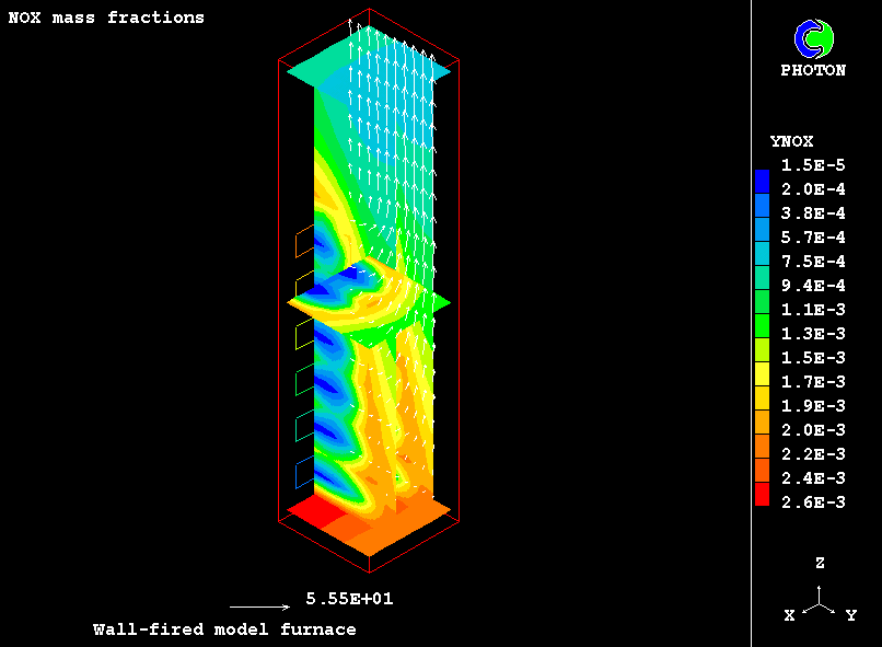 The NOx formation is represented by several submodels, such as oxidation of nitrogen present in the combustion air and that contained in the fuel. The reduction of nitric oxides both in gas phase and on char surface is also taken into account.