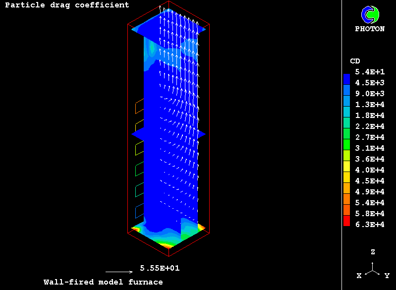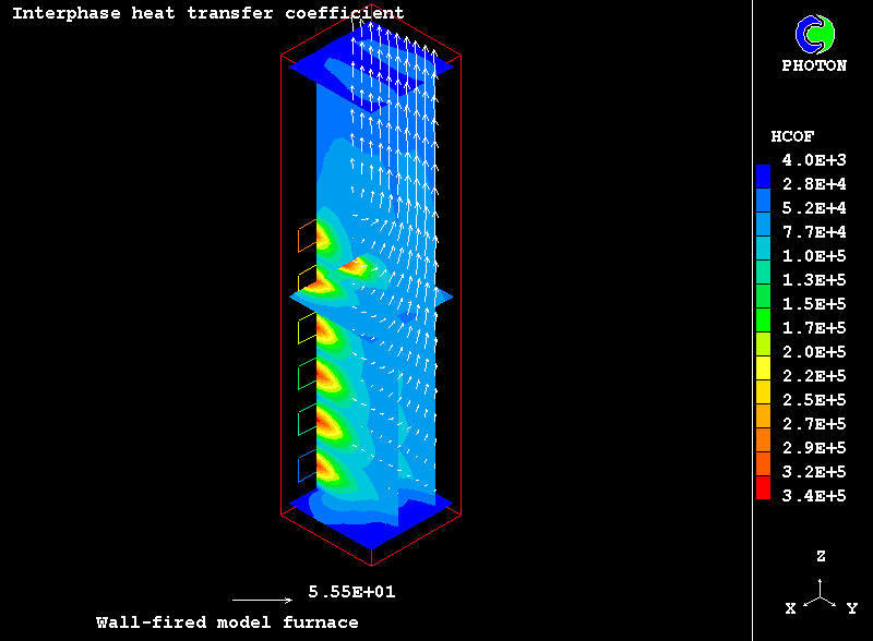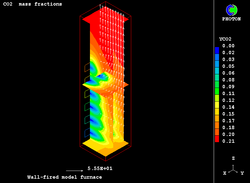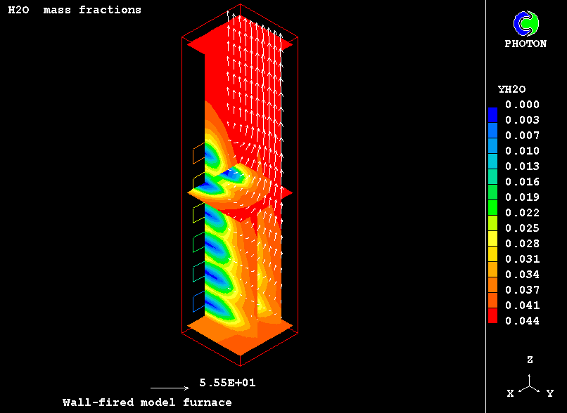 The furnace chamber chosen for the present computations, idealised though, retains many features of real-life industrial equipment: twenty four coal-fired burners are located at the lower part on the furnace front wall; air-pulverised coal particles are injected axially into the combustion chamber; they are ignited; steady state combustion takes place; combustion products flow towards the outlet at the upper part of the chamber.