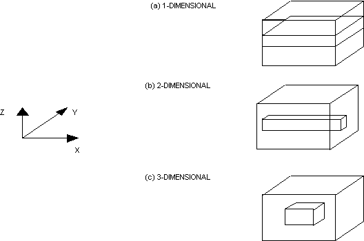 Assuming the computational grid has a regular structure, then topologically it is cuboidal in shape with NX*NY*NZ cells. Three partitioning strategies can arise from such a grid.