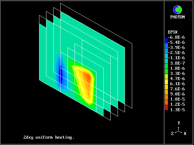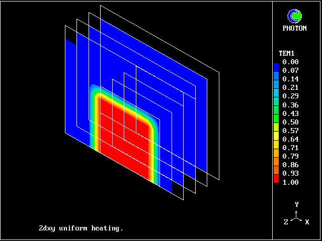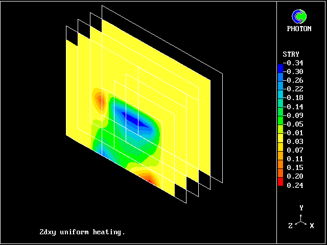 This 3D domain comprises four variants ( one for each Z-slab) of the problem of thermal expansion of solid block placed in the cold stream: