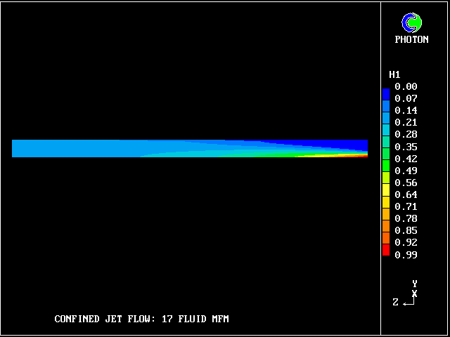 The 17-fluid model is considered here to simulate the turbulent mixing resulting from the admission of two separate, isothermal coaxial jets of different composition into a concentric duct as depicted diagrammatically below.