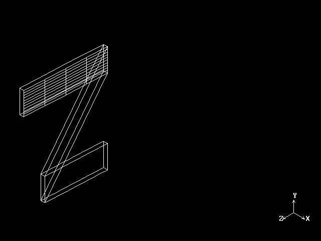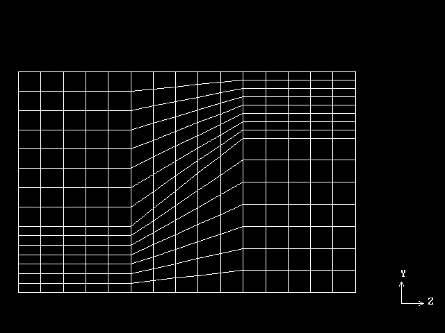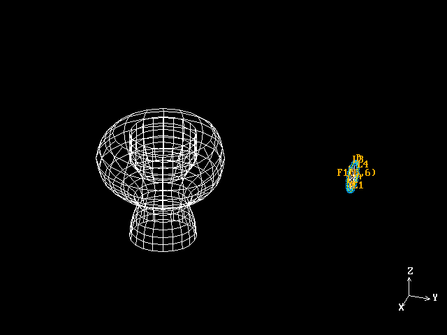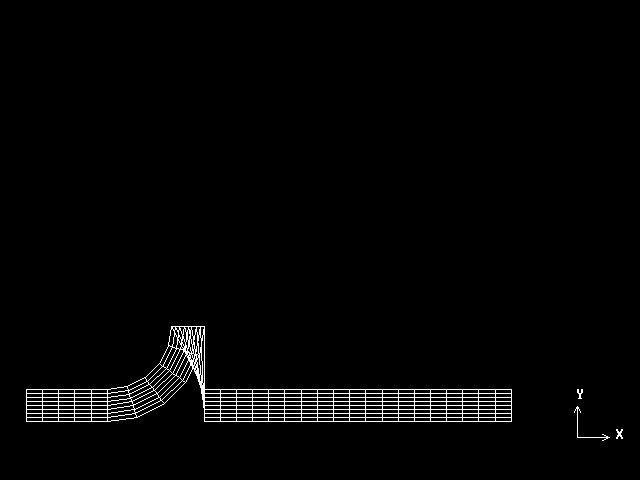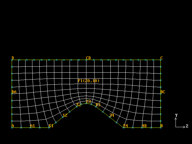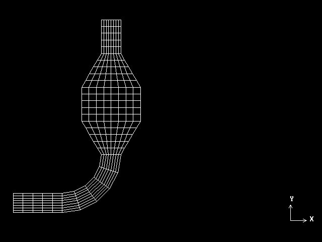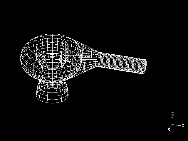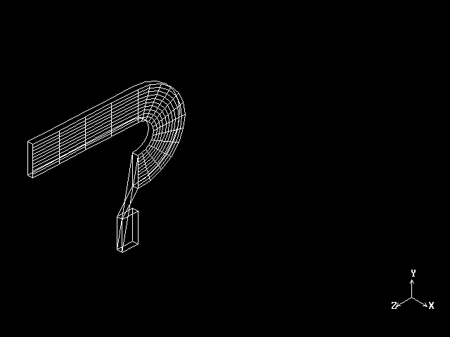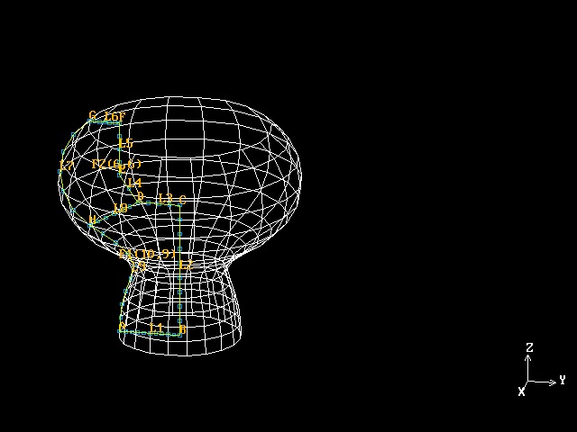 REAL(PI,DD,RR,AN,Z1,Y1,Y2);PI=3.14159;DD=0.5;RR=0.2;AN=40 AN=AN*PI/180. Z1=RR*SIN(AN);Y1=DD*TAN(AN)-RR/COS(AN)+RR*COS(AN) Y2=DD*TAN(AN)-RR/COS(AN)+RR BFC=T GSET(P,A,0,0,-1);GSET(P,B,0,0,1);GSET(P,C,0,1,1);GSET(P,D,0,1,-1) GSET(P,E1,0,0,-DD);GSET(P,E2,0,Y1,-Z1) GSET(P,E3,0,Y1,Z1);GSET(P,E4,0,0,DD) GSET(L,A1,A,E1,4);GSET(L,12,E1,E2,4) GSET(L,23,E2,E3,4,ARC,0,Y2,0) GSET(L,34,E3,E4,4);GSET(L,4B,E4,B,4) GSET(L,BC,B,C,10);GSET(L,CD,C,D,20) GSET(L,DA,D,A,10) GSET(F,F1,A,E1.E2.E3.E4,B,- GSET(M,F1,+K+J,1,1,1,LAP30.FFFTFF) GSET(C,I2,F,I1,+,.1,0,0);GSET(I)